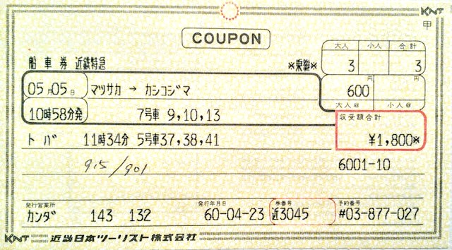 現代のような時代が来ると判っていれば、「きっぷ」の写真を残すべきであったと後悔している。但し、デジタルカメラが無かった時代であり、自動焦点のスチールカメラで適切に撮影することは困難であったかもしれず、もし可能であったとしても顕著なコストであったと推察される。